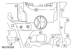 NOTICE: During engine repair procedures, cleanliness is extremely important. All parts must be thoroughly cleaned and any foreign material, including any material created while cleaning gasket surfaces, that enters the oil passages, coolant passages or the oil pan, can cause engine failure.
