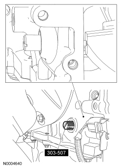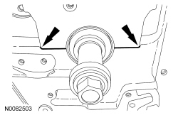 NOTICE: Do not loosen or remove the crankshaft pulley bolt without first installing the special tools as instructed in this procedure. The crankshaft pulley and the crankshaft timing sprocket are not keyed to the crankshaft. The crankshaft, the crankshaft sprocket and the pulley are fitted together by friction, using diamond washers between the flange faces on each part. For that reason, the crankshaft sprocket is also unfastened if the pulley bolt is loosened. Before any repair requiring loosening or removal of the crankshaft pulley bolt, the crankshaft and camshafts must be locked in place by the special service tools, otherwise severe engine damage can occur.