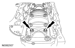 NOTE: Position the crankshaft to the rear of the cylinder block, then position the crankshaft to the front of the cylinder block before tightening the main bearing beam bolts.