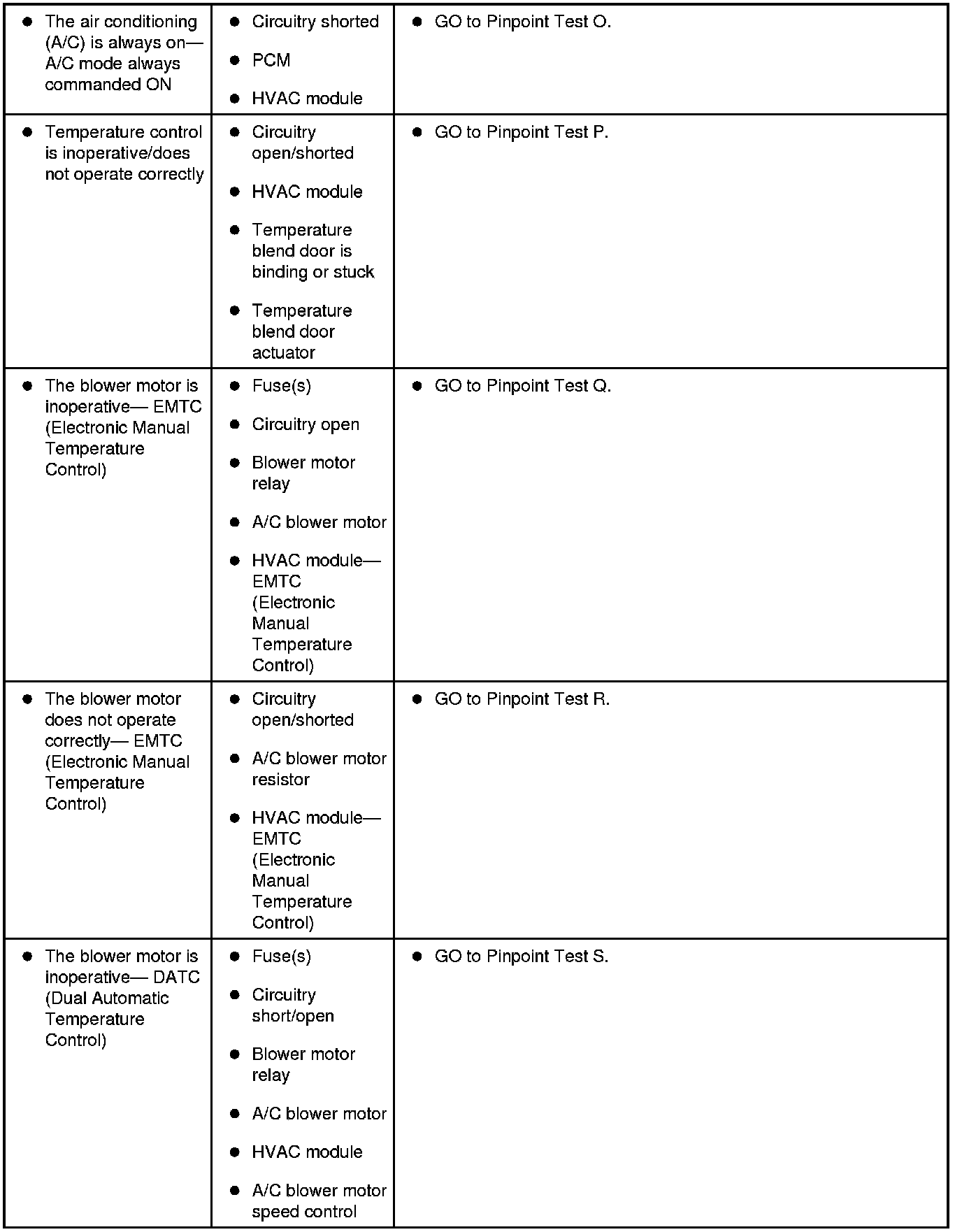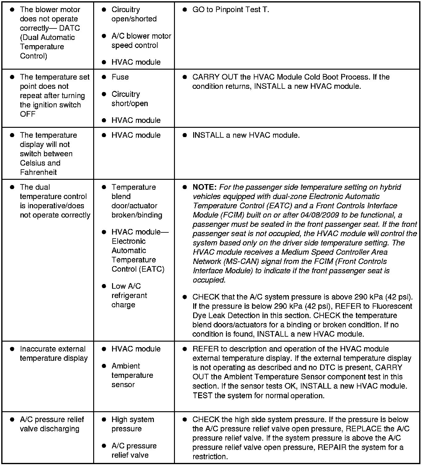 Symptom Chart - Climate Control Systems