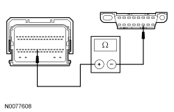 - Measure the resistance between the PCM C175B-58, circuit VDB05 (WH), harness side and the DLC (Data Link Connector) C251-14, circuit VDB05 (WH), harness side.