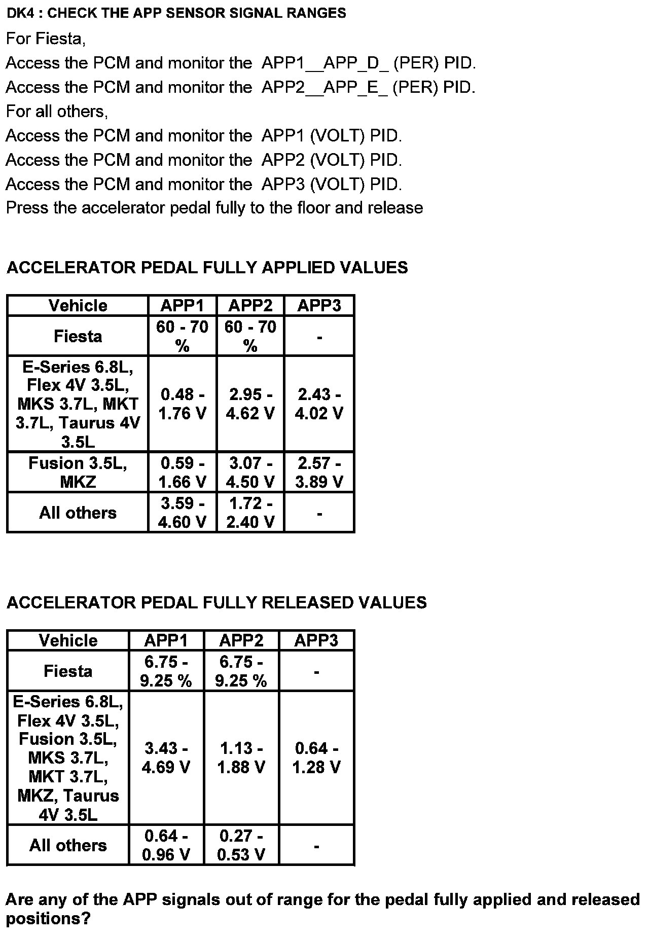 Test DK: Accelerator Pedal Position (APP) Sensor