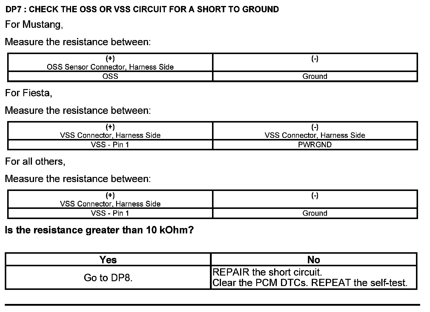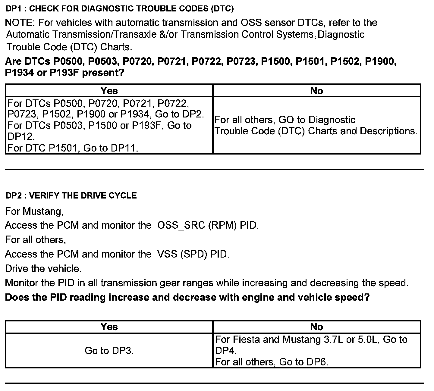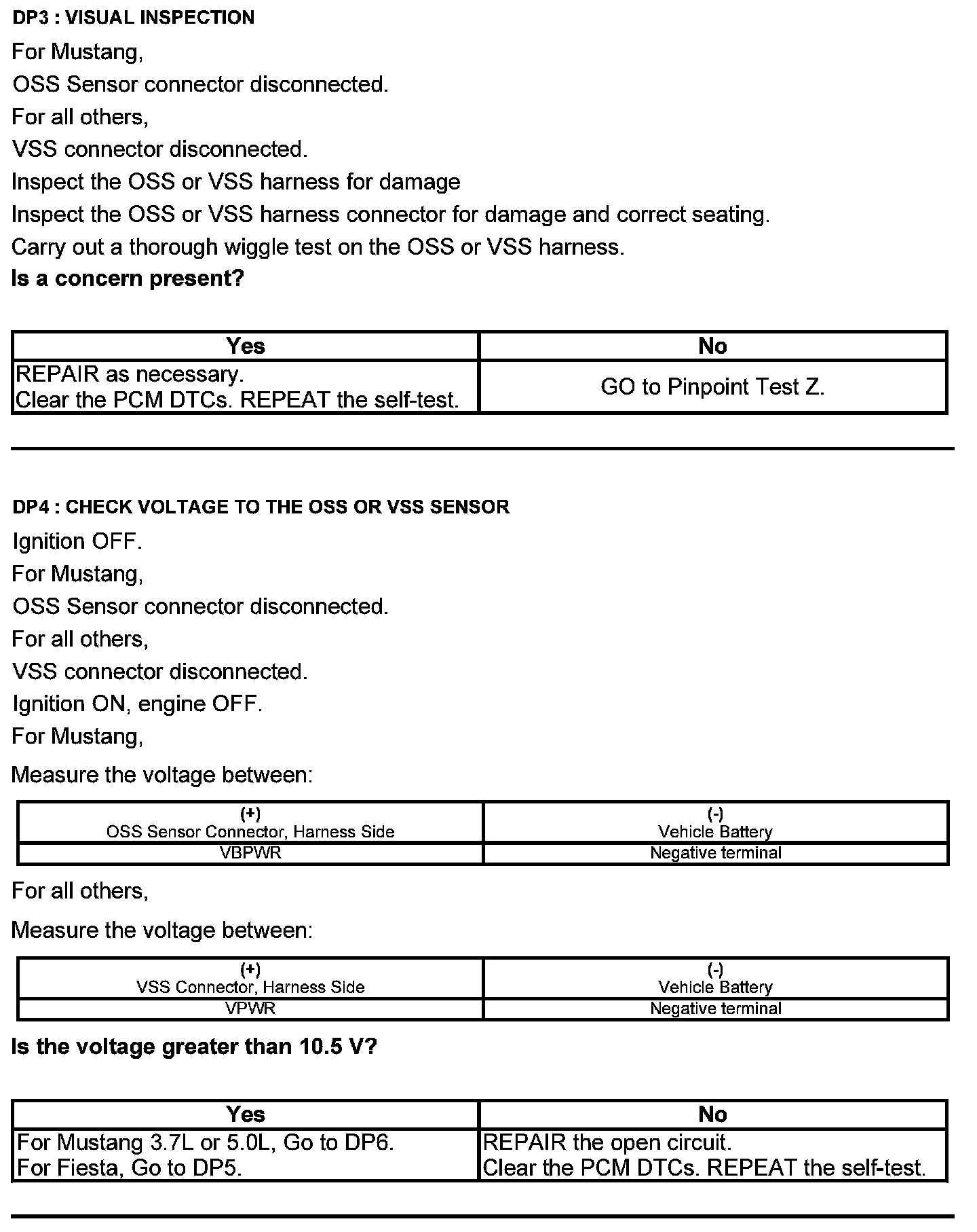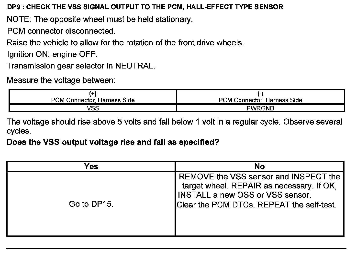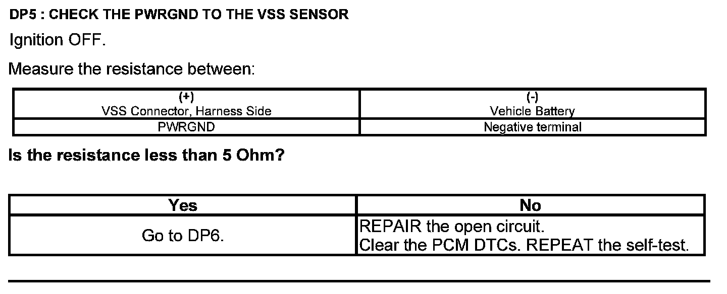 Test DP: Output Shaft Speed (OSS) Sensor/Vehicle Speed Sensor (VSS)