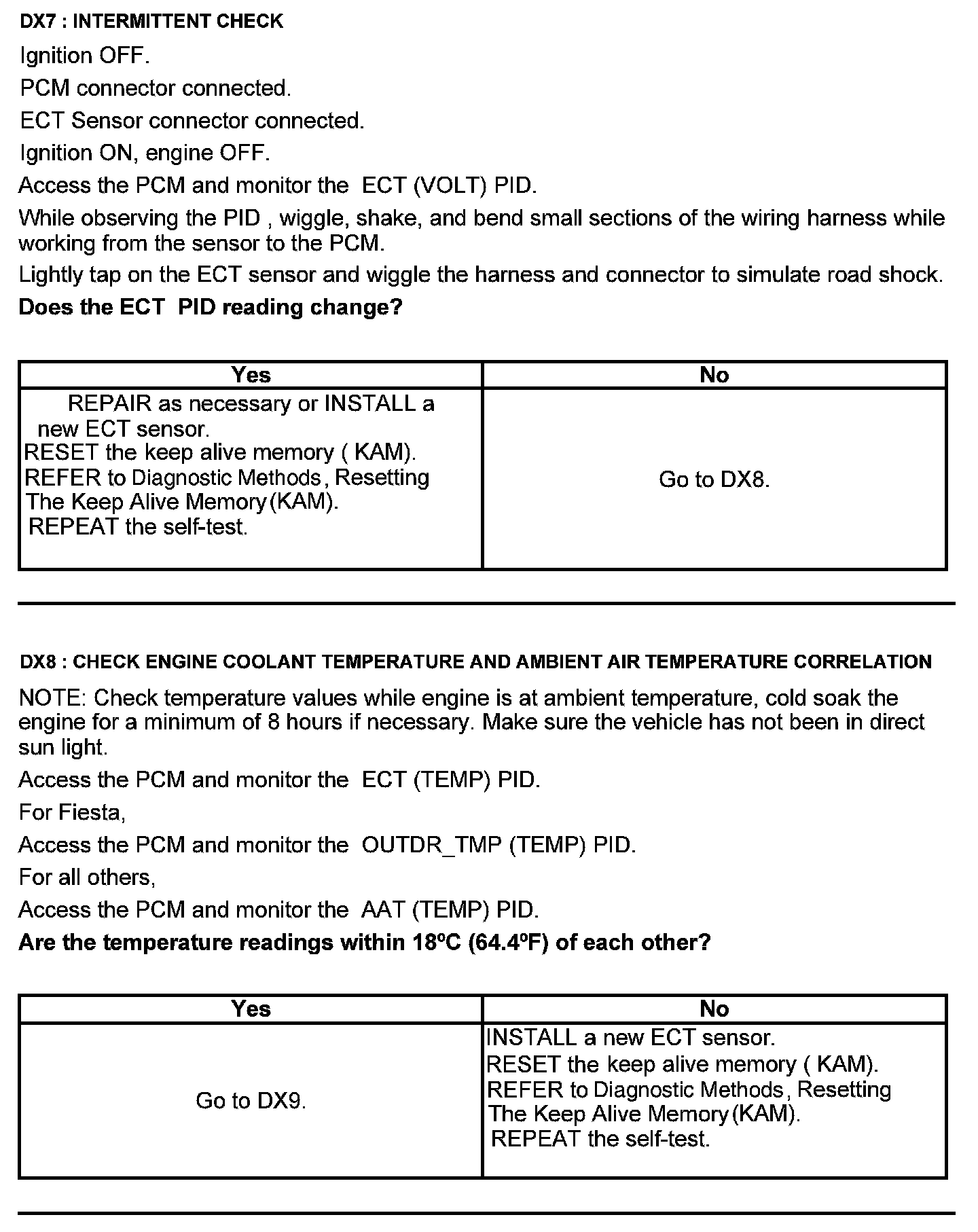 Test DX: Engine Coolant Temperature (ECT) Sensor