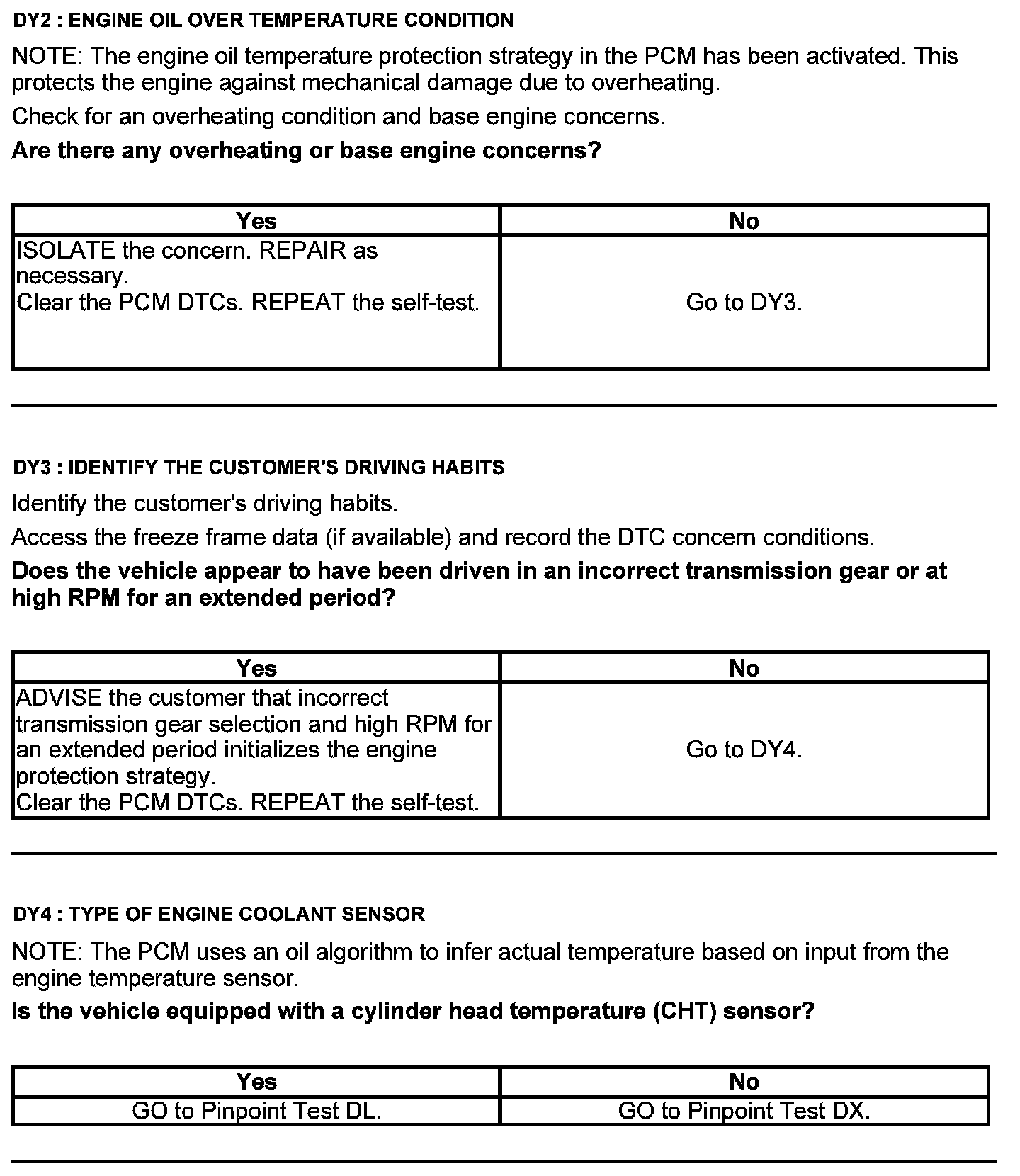 Test DY: Engine Oil Temperature (EOT) Sensor