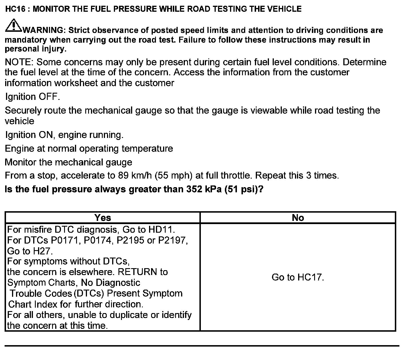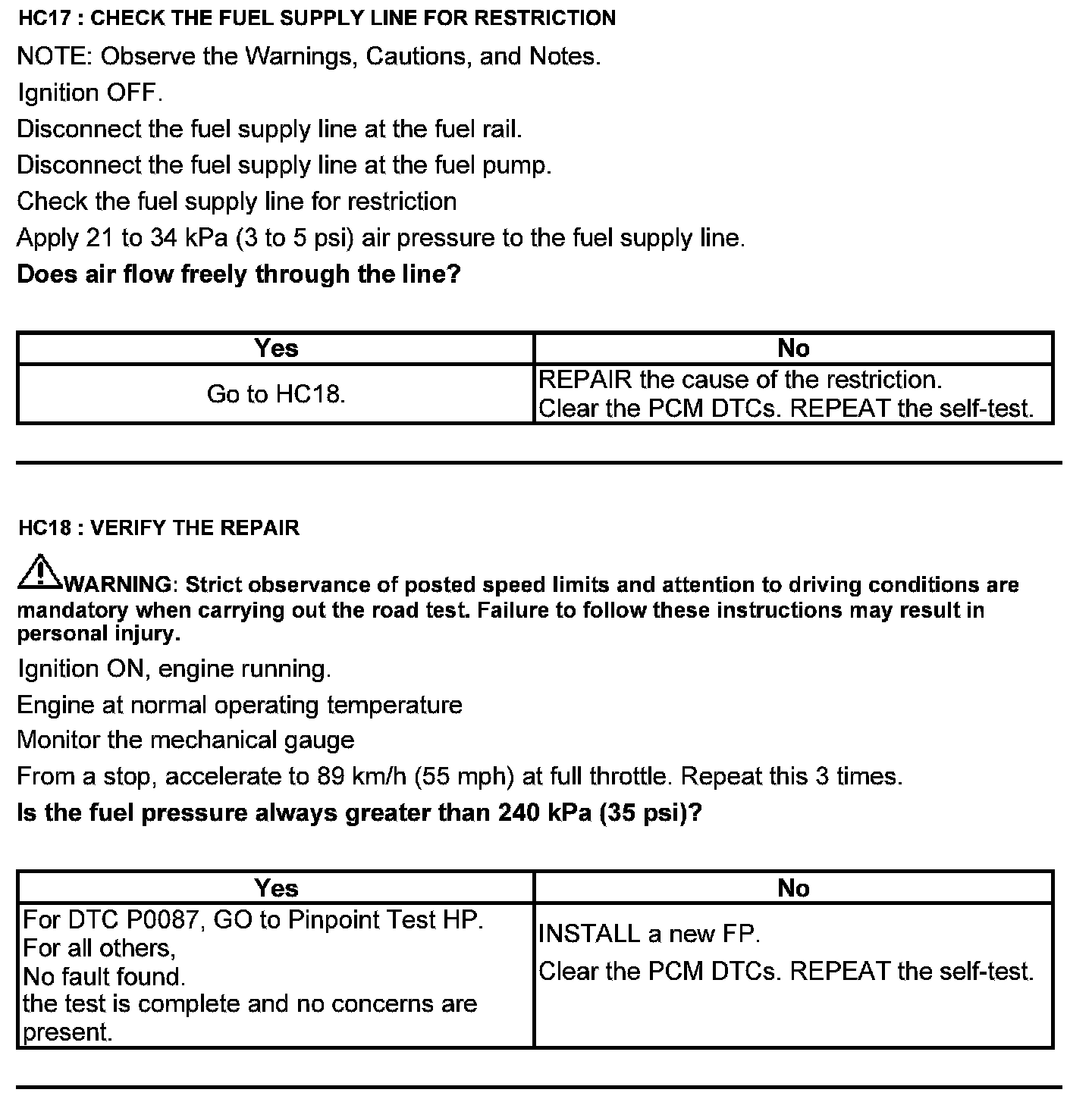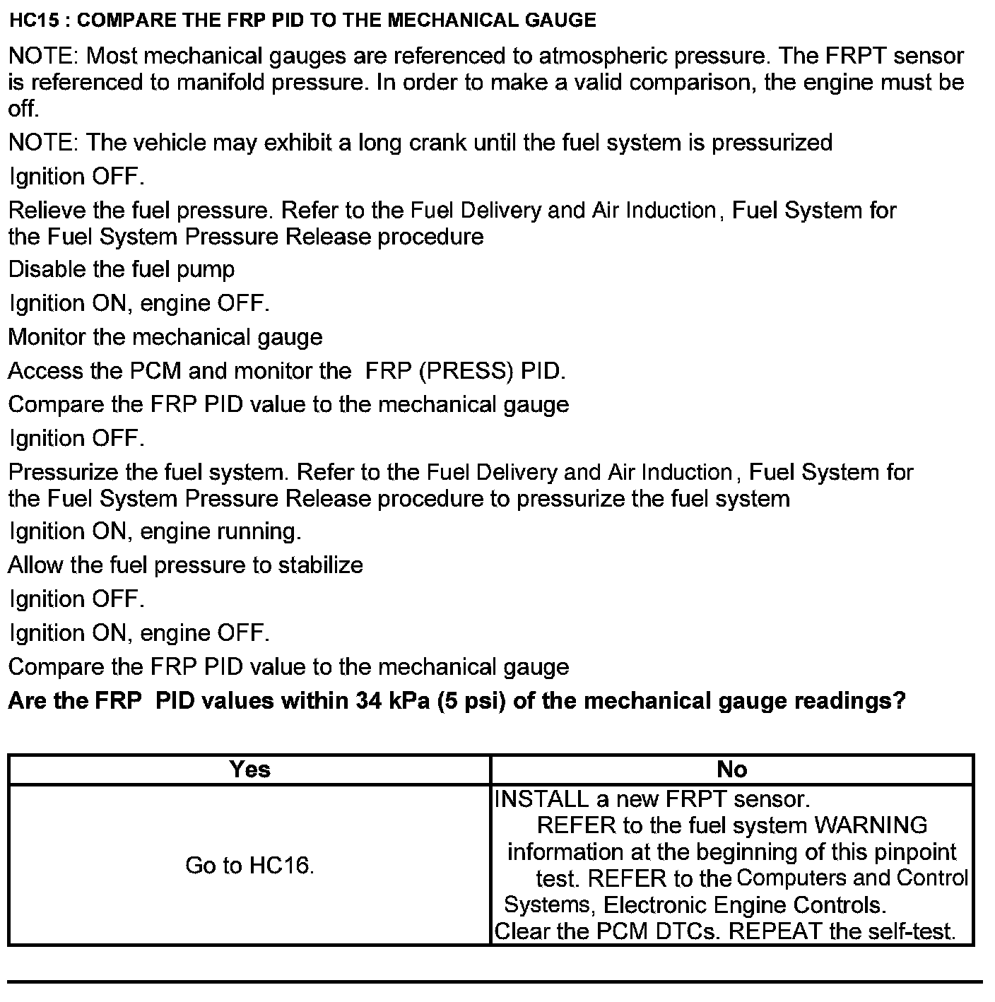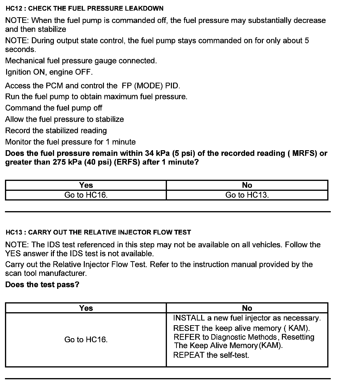 Test HC: Fuel Delivery System