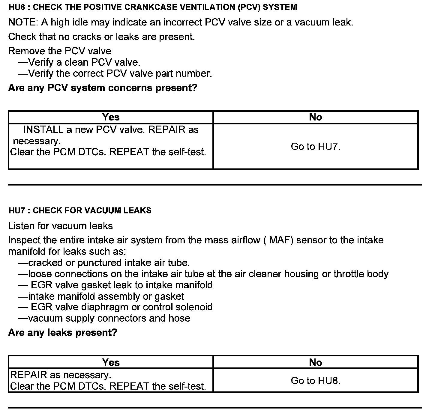 Test HU: Intake Air Systems