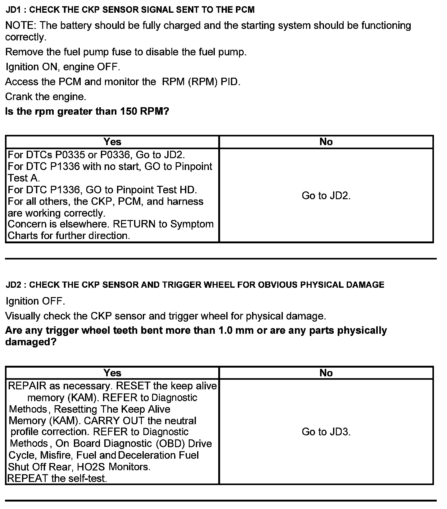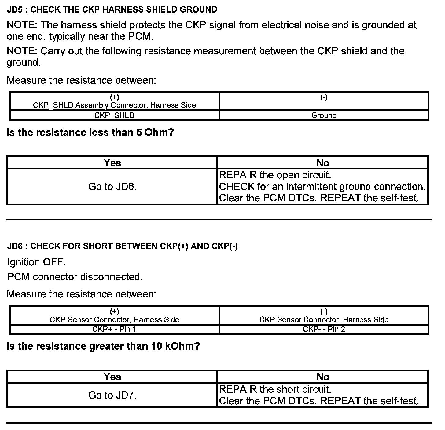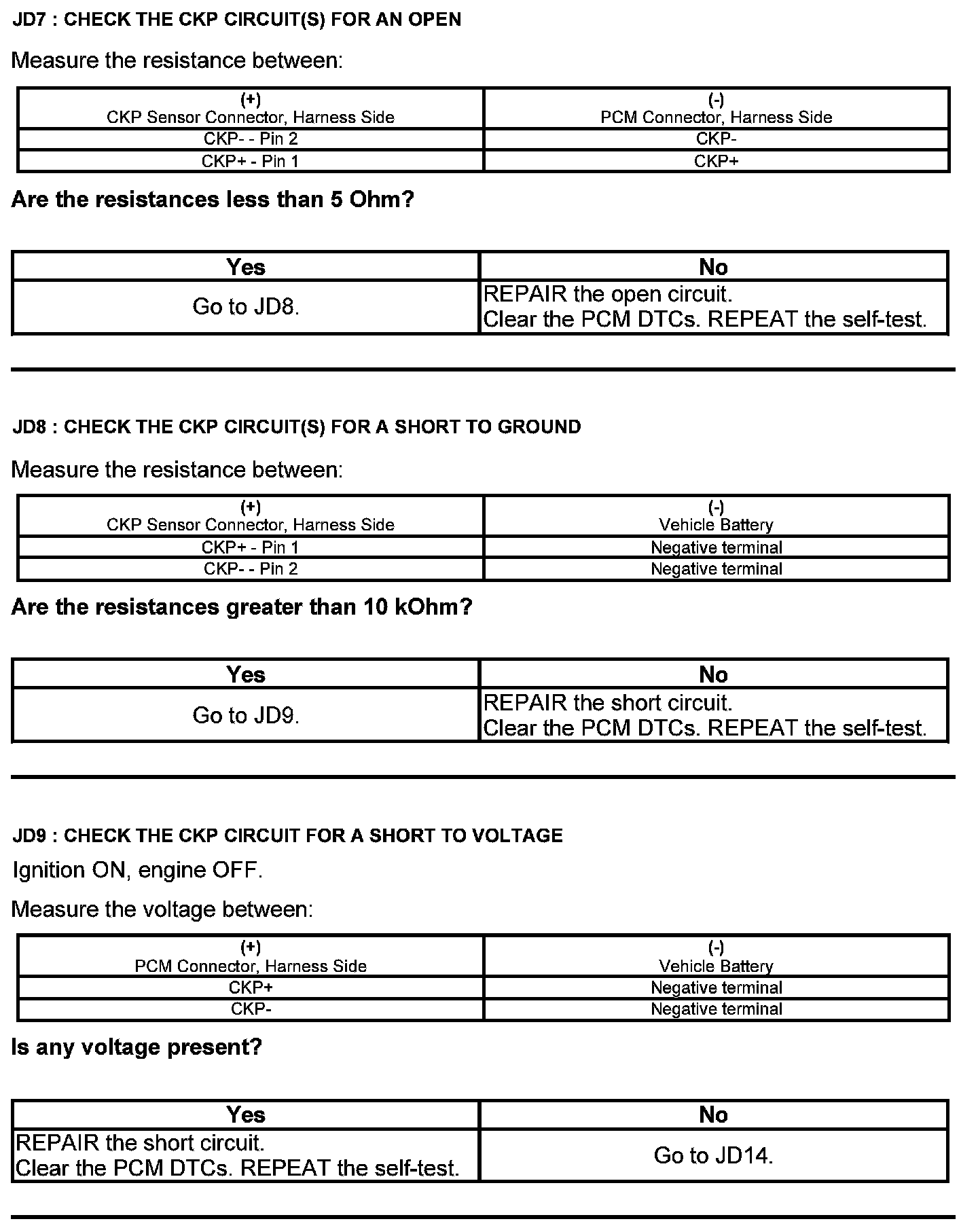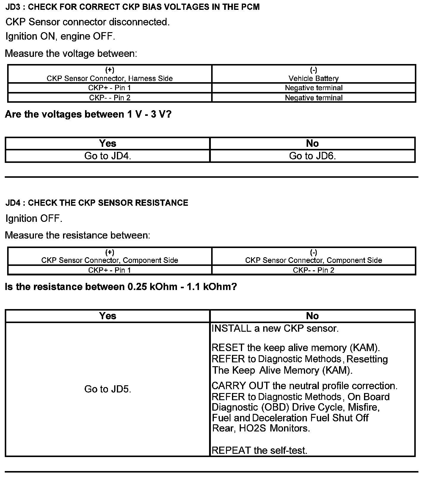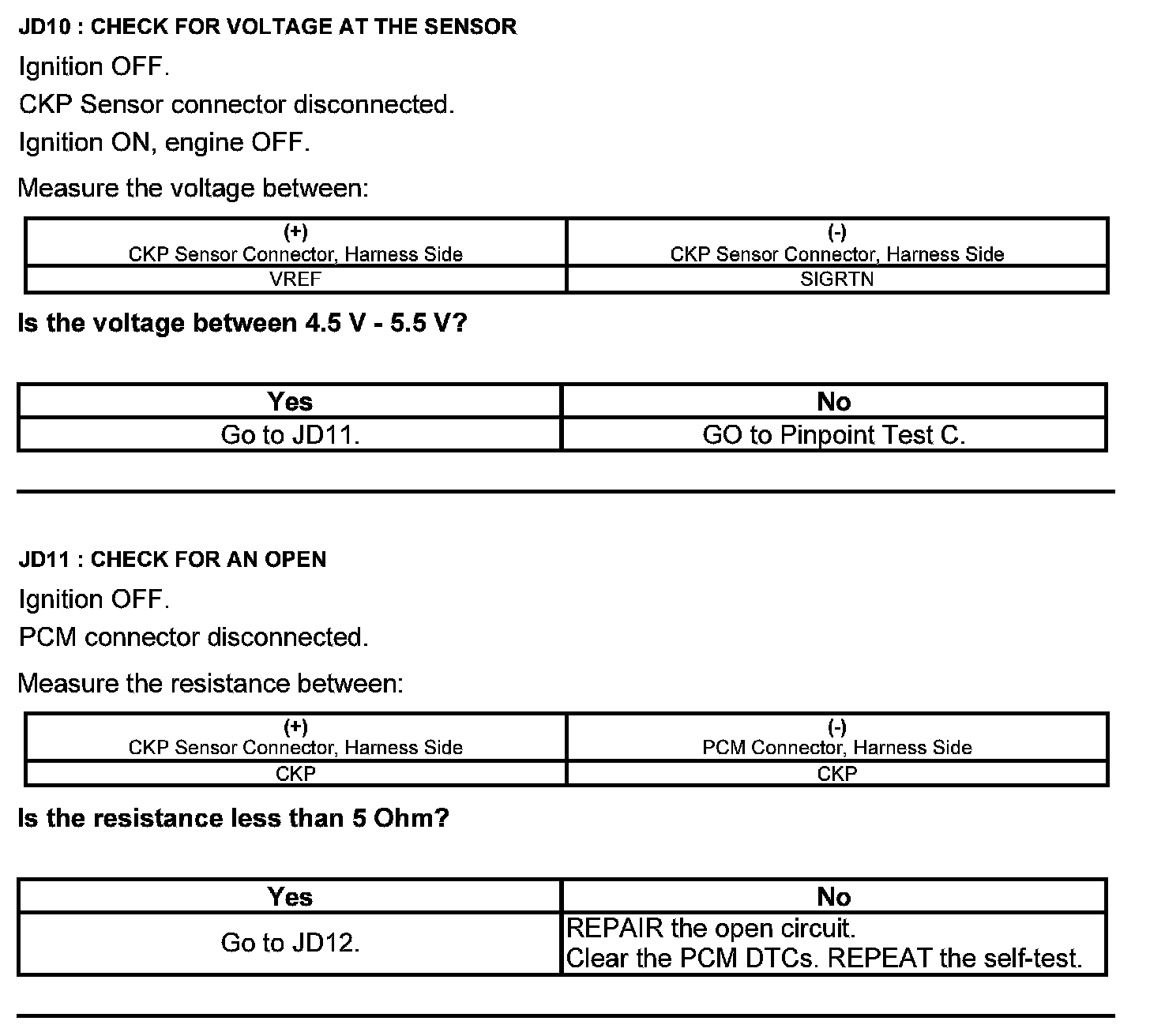 Test JD: Crankshaft Position (CKP) Sensor