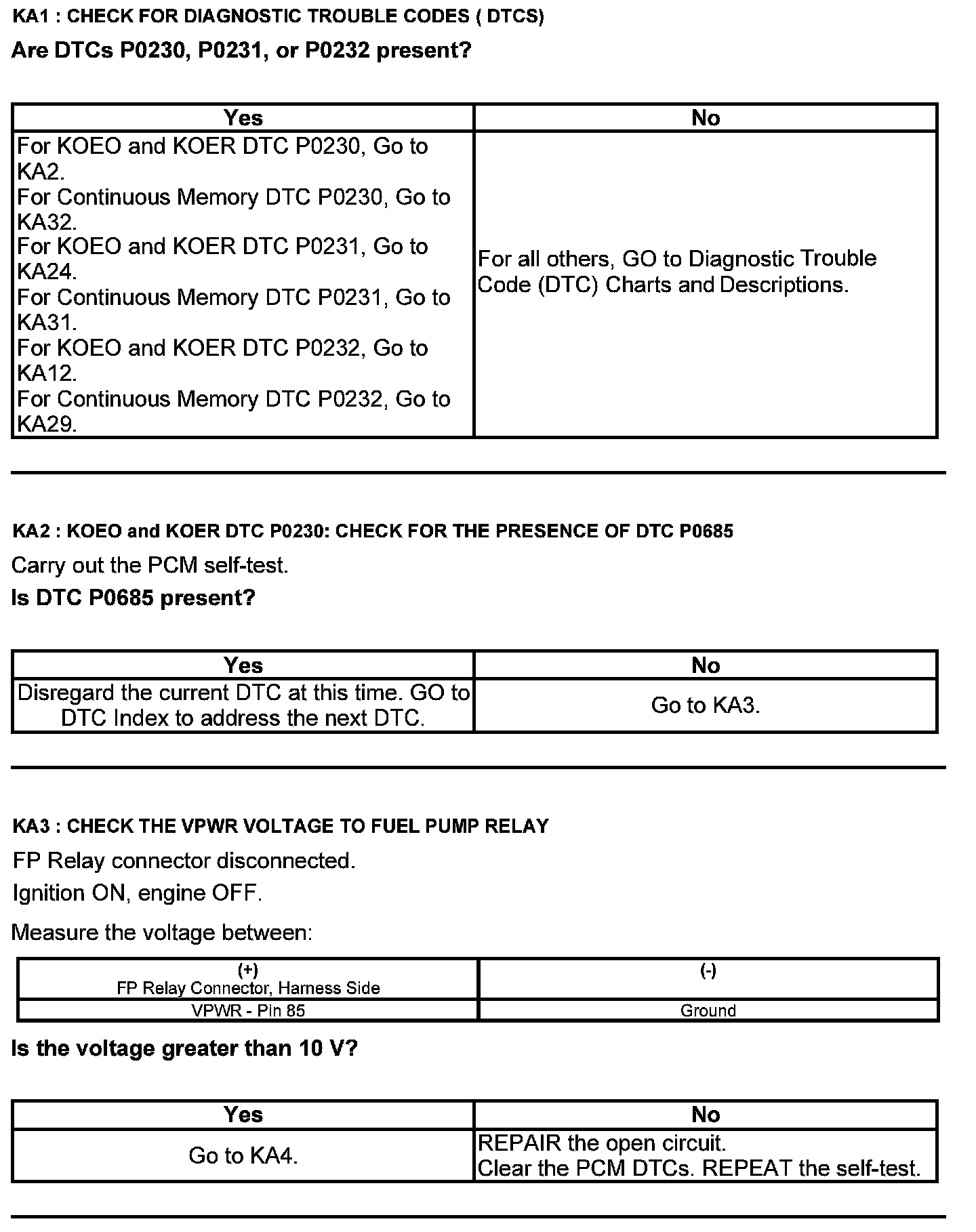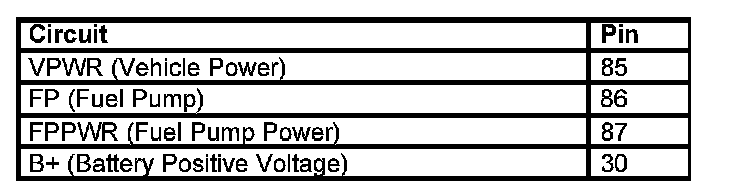 Fuel Pump (FP) Relay Connector - The VPWR and FP circuits may be reversed in the harness connector. Refer to the Wiring Diagrams for schematic and connector information.