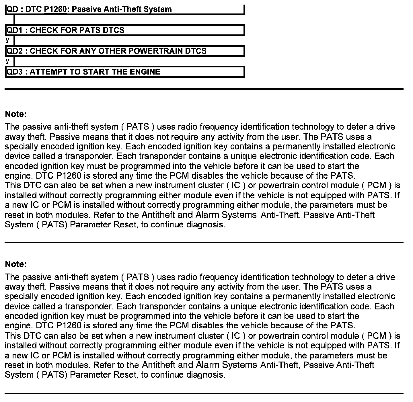 Test QD: DTC P1260: Passive Anti-Theft System