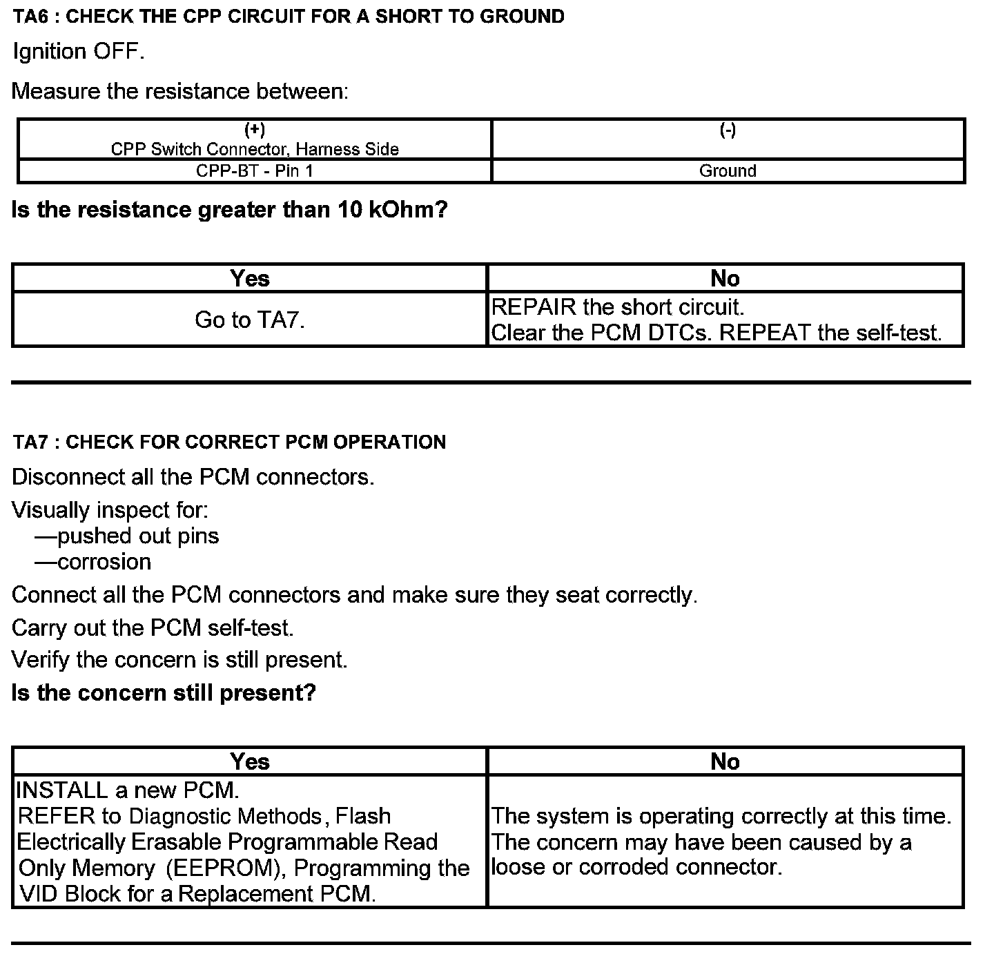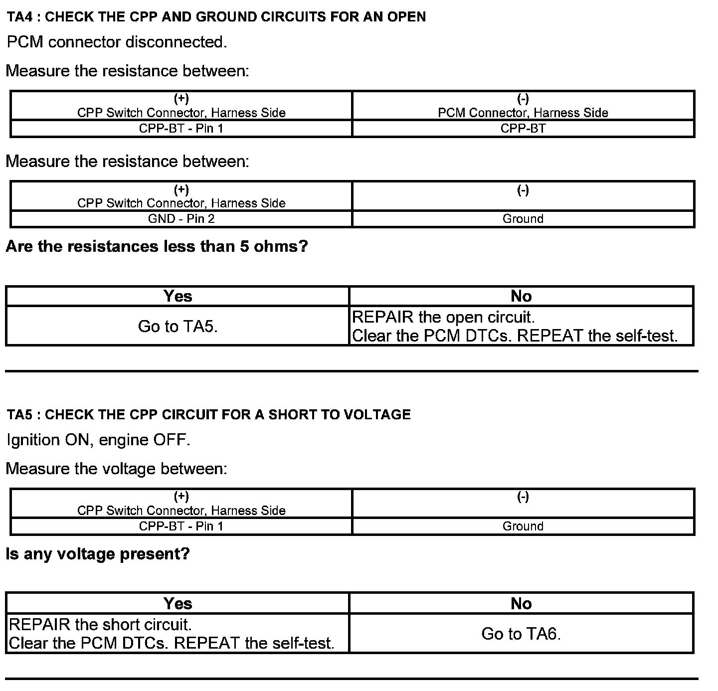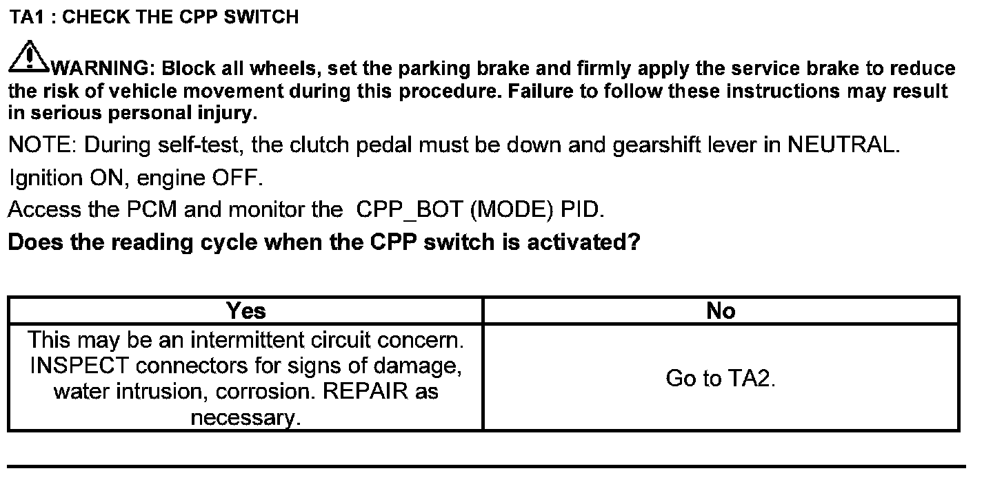 Test TA: Clutch Pedal Position (CPP#2) Switch