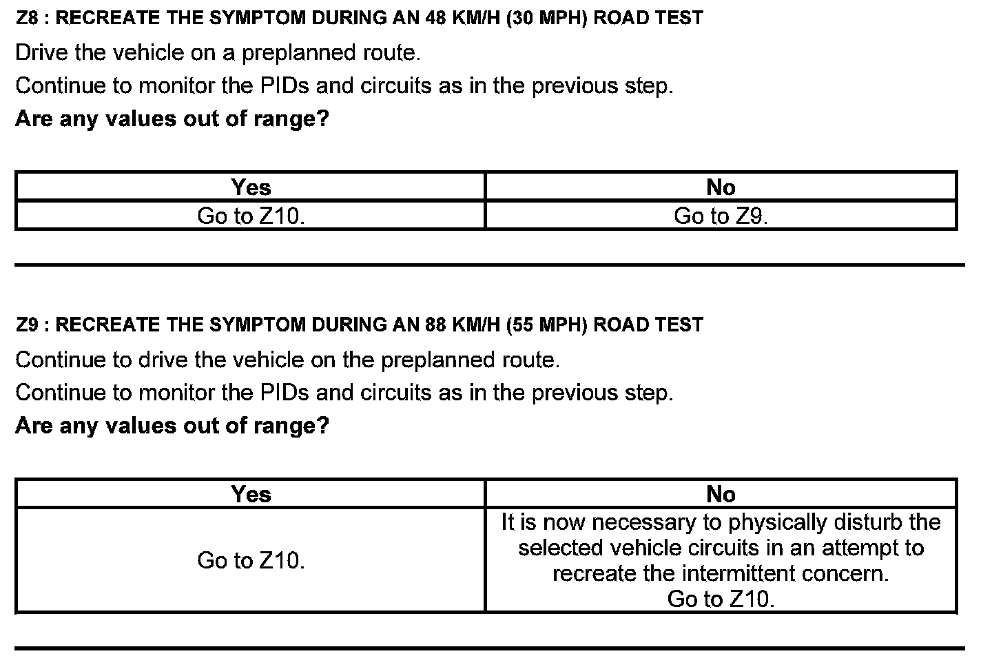 Test Z: Intermittent
