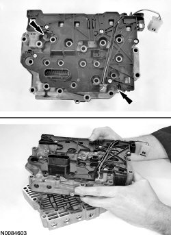 6. Position the solenoid body assembly on the valve body and install the 2 bolts.