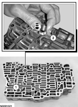 Install the valve body valves, springs and retaining clips in the main control valve body. See the Valve Body illustration at the beginning of this procedure for valve and spring locations.