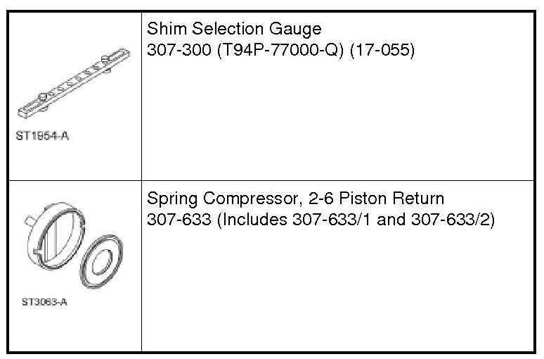 21. Install the 2-6 Piston Return Spring Compressor 307-633/1 on the snap ring.