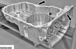 1. Clean and inspect the transaxle case for damage. Clean the silicone from the transaxle case-to-torque converter housing sealing surface and the main control cover sealing surface.