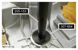 3. Using the Handle 205-153 and the Bushing Installer 307-664, install the new bushing in the transaxle case.