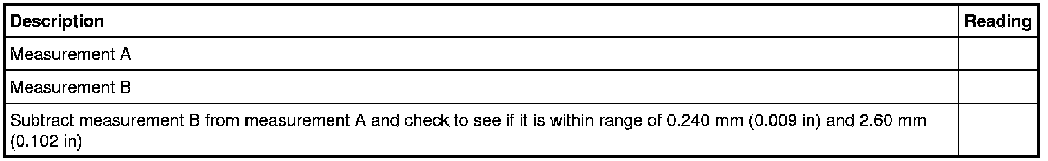 36. Subtract measurement B from measurement A The clearance should be between 0.240 mm (0.009 in) and 2.60 mm (0.102 in). If the clearance is out of range, check the intermediate (2, 6) clutch pack for correct installation. If the intermediate (2, 6) clutch pack is correctly installed, install a new clutch pack.