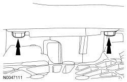 5. Remove the 6 pin-type retainers and the LH front structure-to-subframe splash shield.