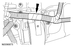 9. Remove the wiring harness retainer from the transaxle support insulator and position the wiring harness aside.