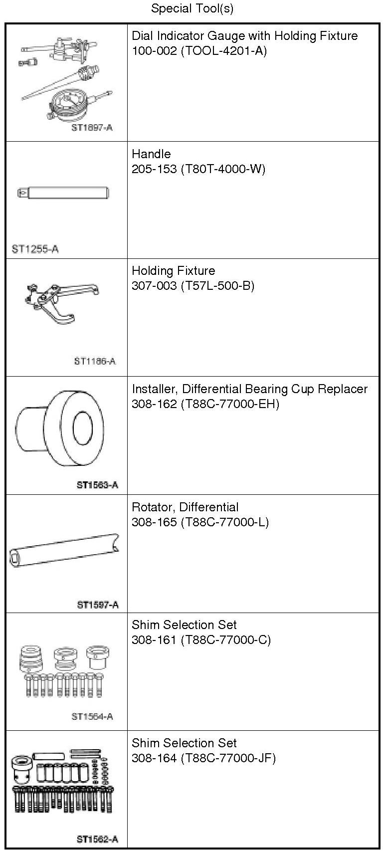 - Using the following chart, select the differential bearing shims that are closest to (or slightly larger than) the final shim size.