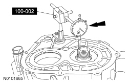18. Mount the Dial Indicator Gauge with Holding Fixture on the transaxle case.