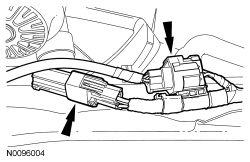 20. Connect the 2 in-line EPAS (Electronic Power Assist Steering) system electrical connectors at the front of the subframe.