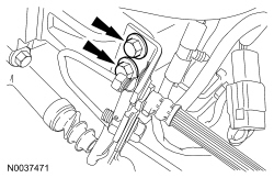 19. Attach the 2 EPAS (Electronic Power Assist Steering) system wiring harness pin-type retainers to the subframe.