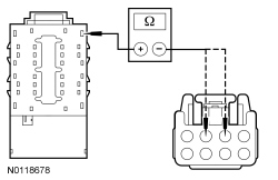 - Measure the resistance between master window control switch C537A-2 or C535B-3 , circuit CBP47 (GN/BU), harness side and SJB (Smart Junction Box) C2280D-32, circuit CBP47 (GN/BU), harness side.