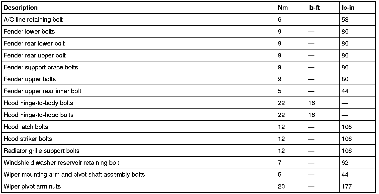 Torque Specifications