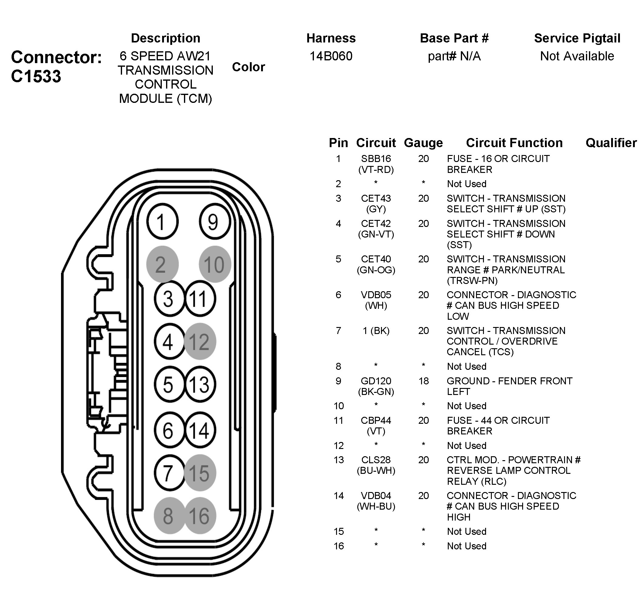 C1533 6 Speed AW21 Transmission Control Module (TCM)