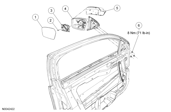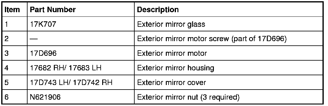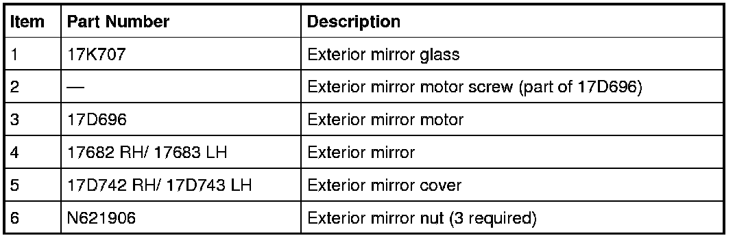 NOTE: LH exterior mirror shown, RH exterior mirror similar.