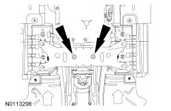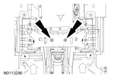 6. With the transmission crossmember neutralized, tighten the transmission crossmember bolts.