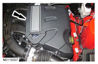 5. If equipped, detach the 2 retainers and remove the engine appearance cover.