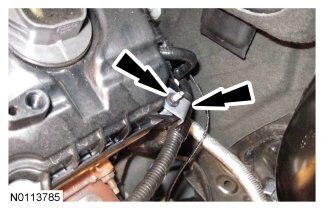 7. Remove the nut from the rear LH valve cover stud bolt and position the generator wiring harness bracket aside.