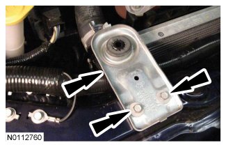 If equipped, remove the 4 nuts (2 shown) and the strut tower cross brace.