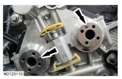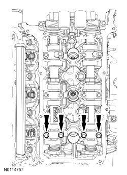 89. Install the 2 new LH VCT (Variable Camshaft Timing) bolts and tighten in 4 stages.
