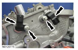 90. NOTE: The 2 VCT (Variable Camshaft Timing) oil control solenoids are removed for clarity.