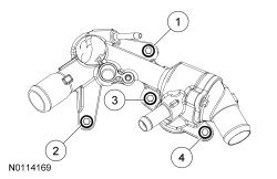 Install the thermostat housing and the 4 bolts and tighten in the sequence shown in 2 stages.