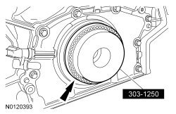 183. NOTE: The dual mass flywheel normally has up to a total of 14 degrees (6.5 ring gear teeth) maximum rotational freeplay between the primary (bolted to crankshaft) and the secondary mass (clutch disc face).
