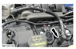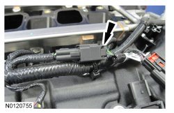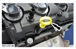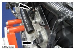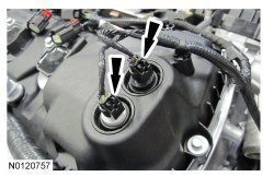 132. Ensure the VCT (Variable Camshaft Timing) seals in the valve cover are below the top of the VCT (Variable Camshaft Timing) oil control solenoid electrical connector or the VCT (Variable Camshaft Timing) seal may leak oil.