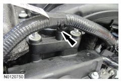 - Attach the wiring harness retainer to the rear of the cylinder head.