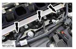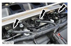 157. Connect the 3 LH fuel rail electrical connectors.