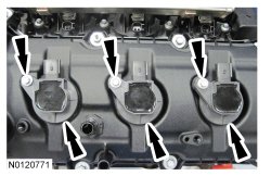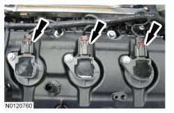 135. Install the 3 LH ignition coil-on-plug assemblies and the 3 bolts.
