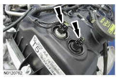 162. Connect the 2 RH VCT (Variable Camshaft Timing) solenoid electrical connectors.