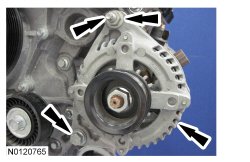 148. Install the generator stud and position the generator and install the nut and bolt.