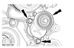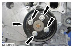 137. Install the coolant pump pulley and the 4 bolts.