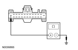- Measure the resistance between the BCM-B (Body Control Module B) C4368A-13, circuit GD110 (BK/WH), harness side and ground.