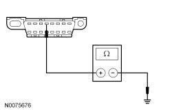 - Measure the resistance between the DLC (Data Link Connector) C251-4, circuit GD114 (BK/BU), harness side and ground; and between the DLC (Data Link Connector) C251-5, circuit GD119 (BK/BU), harness side and ground.