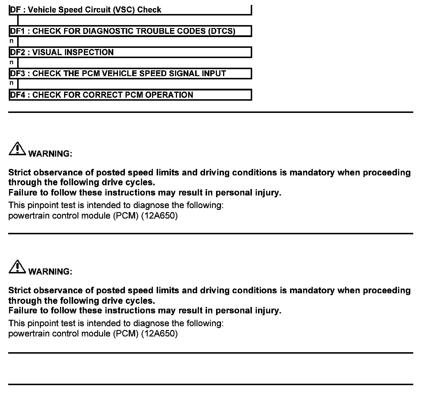 Test DF: Vehicle Speed Circuit (VSC) Check